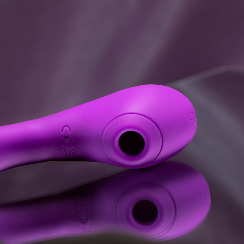 Sakulove Couples Vibrator made of 100% body-safe silicone is the perfect intimate playmate. It is designed for perfect comfort during couples' sexual encounters, while it can also be used alone. It has 7 vibration modes and 7 contactless acoustic clitoral stimulation strengths. The vibrator is made of 100% body-safe medical silicone with a full coverage design to be water-resistant in all aspects. The flexible silica spine in the middle can be bent and straightened, so as to achieve multi-purpose integration. The vibration and sucking pressure build up as the demand builds to an epic climax of release that you've never felt before. Sakulove Couples Vibrator is a complete set of products that provide a wide range of body safety vibrators, specifications, charging cables, convenient travel case and luxurious giftable packaging.